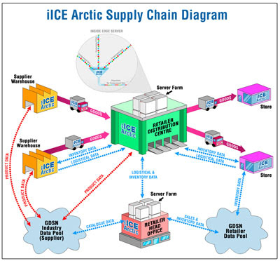 Diagram depicting the flow of supply and data - I don't really understand the technicalities, but the trucks are pretty cute.